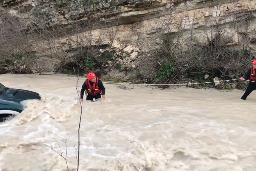 Οι δύο άντρες που επέβαιναν στο όχημα, φαίνεται ότι προσπάθησαν να διασχίσουν τον ορμητικό ποταμό, ωστόσο η προσπάθειά τους δεν είχε την επιθυμητή κατάληξη.