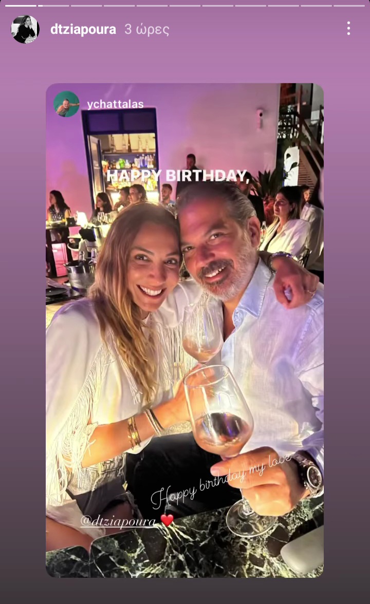 Σε story που έκανε ο Γιάννης Τσιαττάλας στον προσωπικό του λογαριασμό στο instagram το πρωί της Τρίτης (27/06), δημοσίευσε μια κοινή τους φωτογραφία, στην οποία ποζάρουν αγκαλιά, ενώ τής εύχεται: «Χρόνια Πολλά, αγάπη μου».