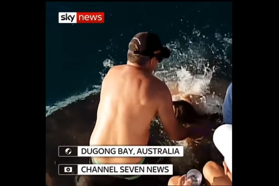 Σε βίντεο από κινητό τηλέφωνο που κατέγραψε το συμβάν τον περασμένο μήνα διακρίνεται η γυναίκα να ουρλιάζει καθώς πέφτει στα νερά, προτού την ανασύρουν οι φίλοι της και το πλήρωμα του σκάφους.