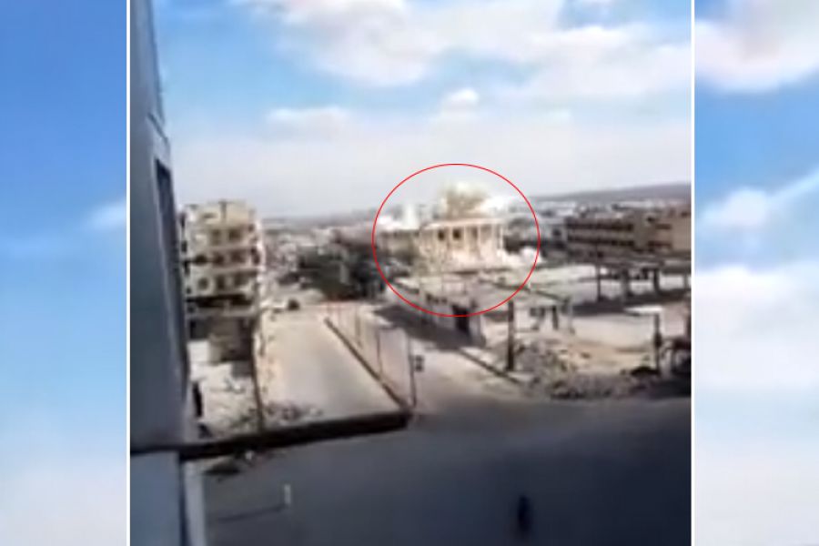 Όπως φαίνεται και στο βίντεο πιο κάτω, μια δυνατή έκρηξη σημειώνεται στο κτίριο και αμέσως μετά ακούγεται η φωνή ενός άντρα που φωνάζει, το πασίγνωστο, πια, «Αλλάχου Ακμπάρ», με πενηγυρική διάθεση.