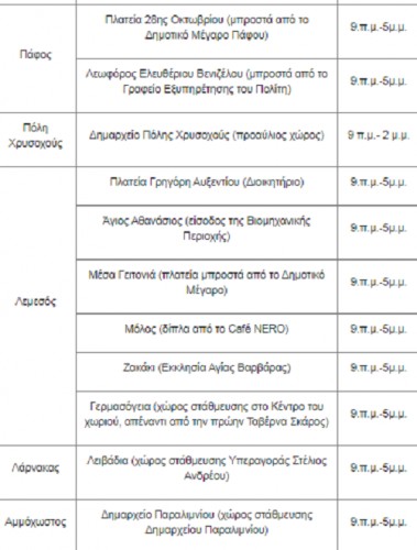 Από αύριο και μέχρι νεότερης ενημέρωσης, τα σημεία δειγματοληψίας είναι τα ακόλουθα: