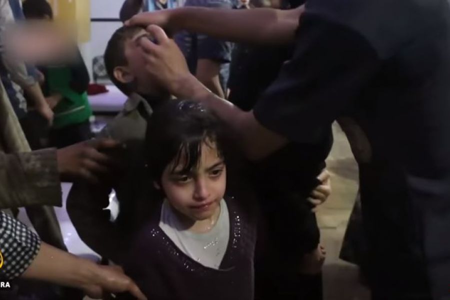 Η ΜΚΟ διασωστών Λευκά Κράνη κατήγγειλε χρήση χημικών όπλων από το καθεστώς Άσαντ, αναρτώντας στο διαδίκτυο φωτογραφίες που εικονίζουν ανθρώπους να αντιμετωπίζουν σοβαρότατα αναπνευστικά προβλήματα και να βγάζουν αφρούς από το στόμα.