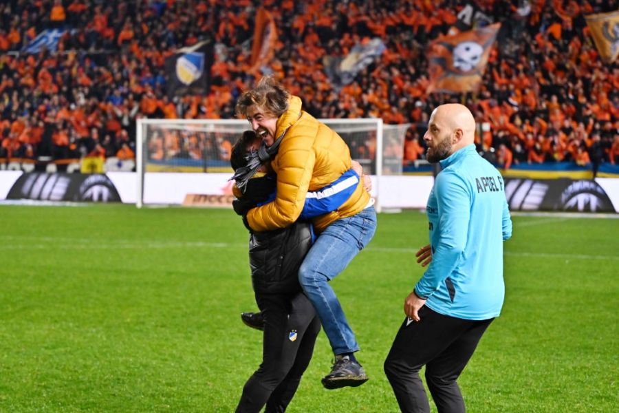 Οι παίκτες, το τεχνικό επιτελείο και οι οπαδοί του ΑΠΟΕΛ πανηγύρισαν έξαλλα τη μεγάλη νίκη επί του Άρη στο ΓΣΠ.