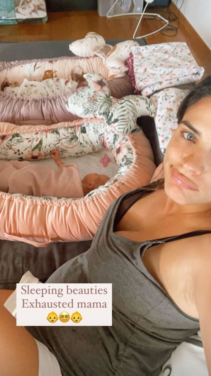 Η γλυκιά μανούλα μπορεί να είναι εξαντλημένη, ωστόσο φαίνεται να απολαμβάνει τα όσα βιώνει μετά τον ερχομό των μωρών.