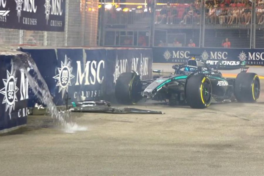 Κατά τη διάρκεια του FP2, ο Βρετανός πιλότος της Mercedes έχασε τον έλεγχο του μονοθεσίου του στην στροφή 16 της Marina Bay, με αποτέλεσμα να στείλει το αυτοκίνητό του στις μπαριέρες.