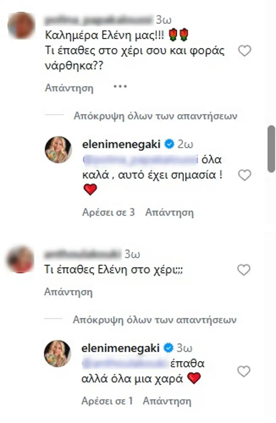 Αξίζει να σημειωθεί πως η Ελένη Μενεγάκη απάντησε σε αρκετά σχόλια, δείχνοντας ότι της έχει λείψει η αμεσότητα με τον κόσμο. Τρεις δεκαετίες καθημερινής παρουσίας στην τηλεόραση δεν ξεχνιούνται εύκολα και η σύνδεση που έχτισε με το κοινό της παραμένει ισχυρή, ακόμη και εκτός γυαλιού.