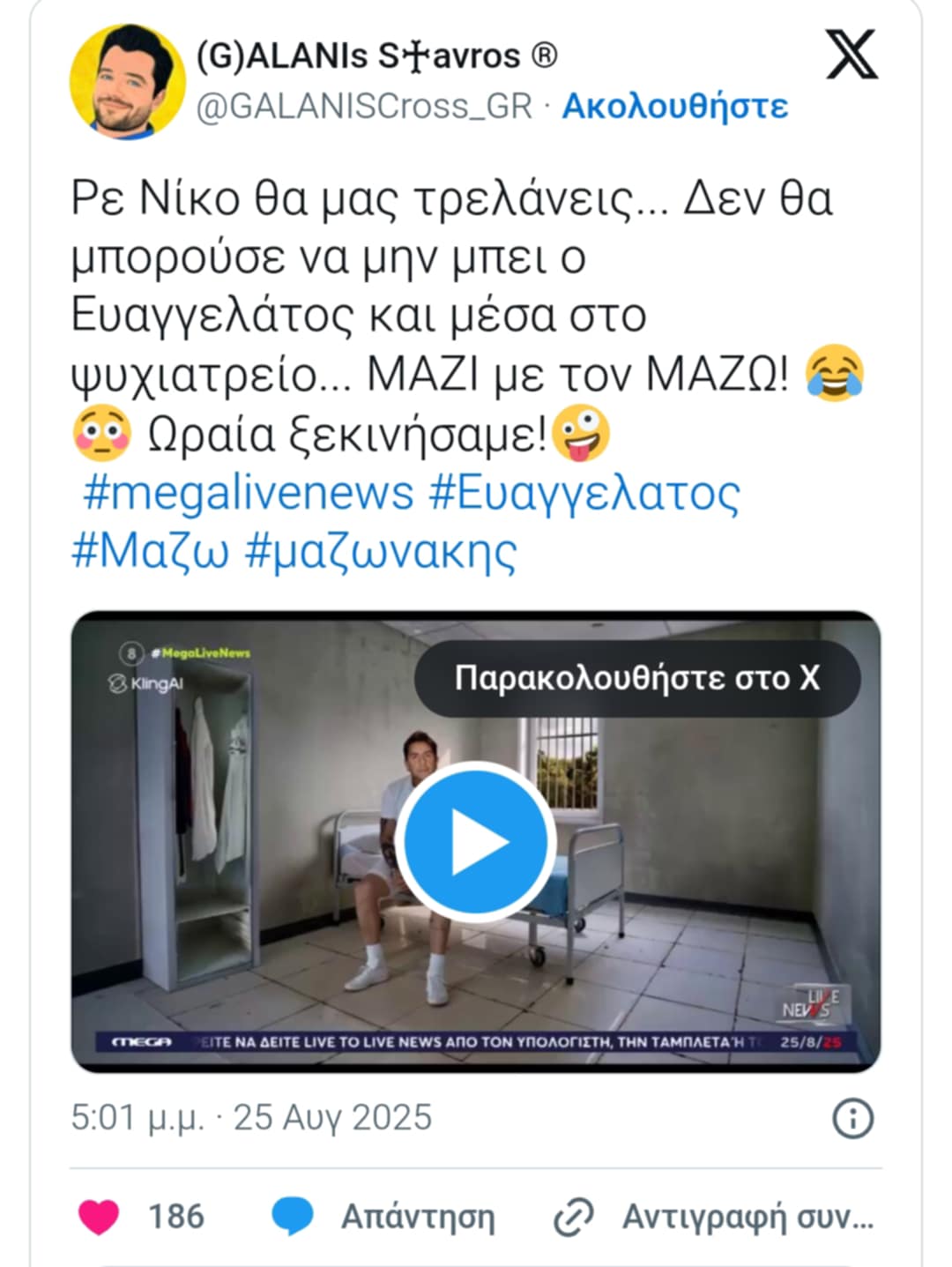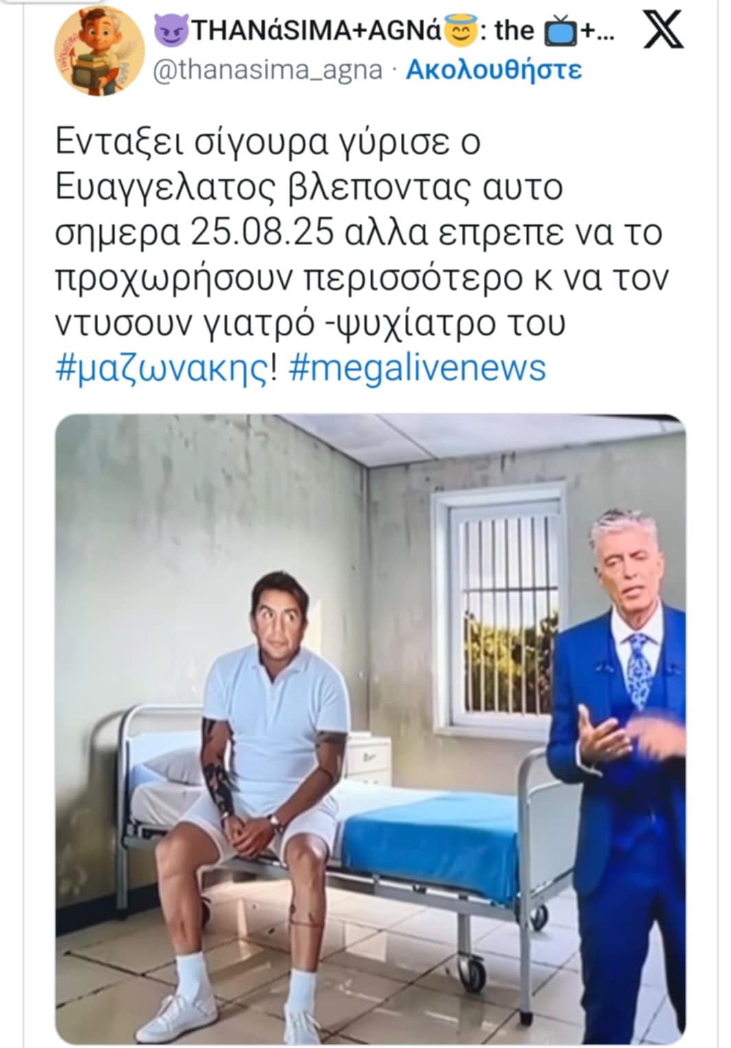 Εκτενώς ασχολήθηκε με την πρόσφατη περιπέτεια του Γιώργου Μαζωνάκη Δρομοκαΐτειο ο Νίκος Ευαγγελάτος στη σημερινή (25/8) πρεμιέρα της εκπομπής Live News για τη νέα τηλεοπτική σεζόν.