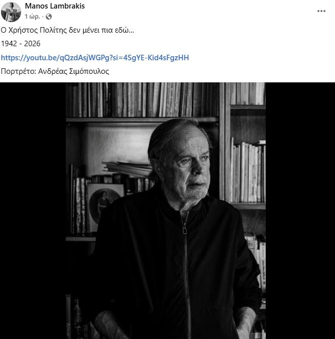 Την είδηση του θανάτου έκανε γνωστή με ανάρτησή του ο συγγραφέας Μάνος Λαμπράκης στο προσωπικό του προφίλ στο Facebook.