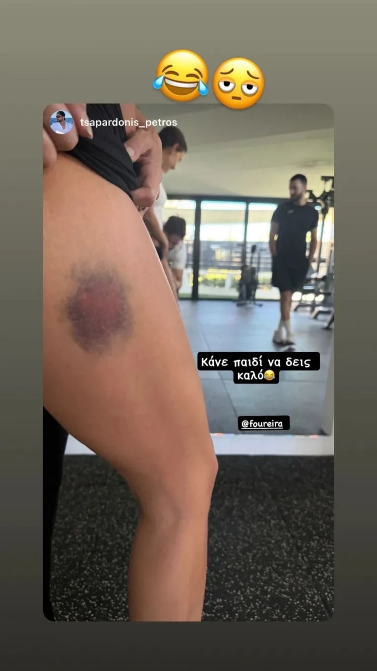 Το πρωί της Παρασκευής 3 Οκτωβρίου, η Φουρέιρα μοιράστηκε με τους followers της στο Instagram ένα απρόοπτο περιστατικό από το παιχνίδι με τον μικρό Ερμή. Μέσα από ένα story, έδειξε μια έντονη μελανιά στο πόδι της.