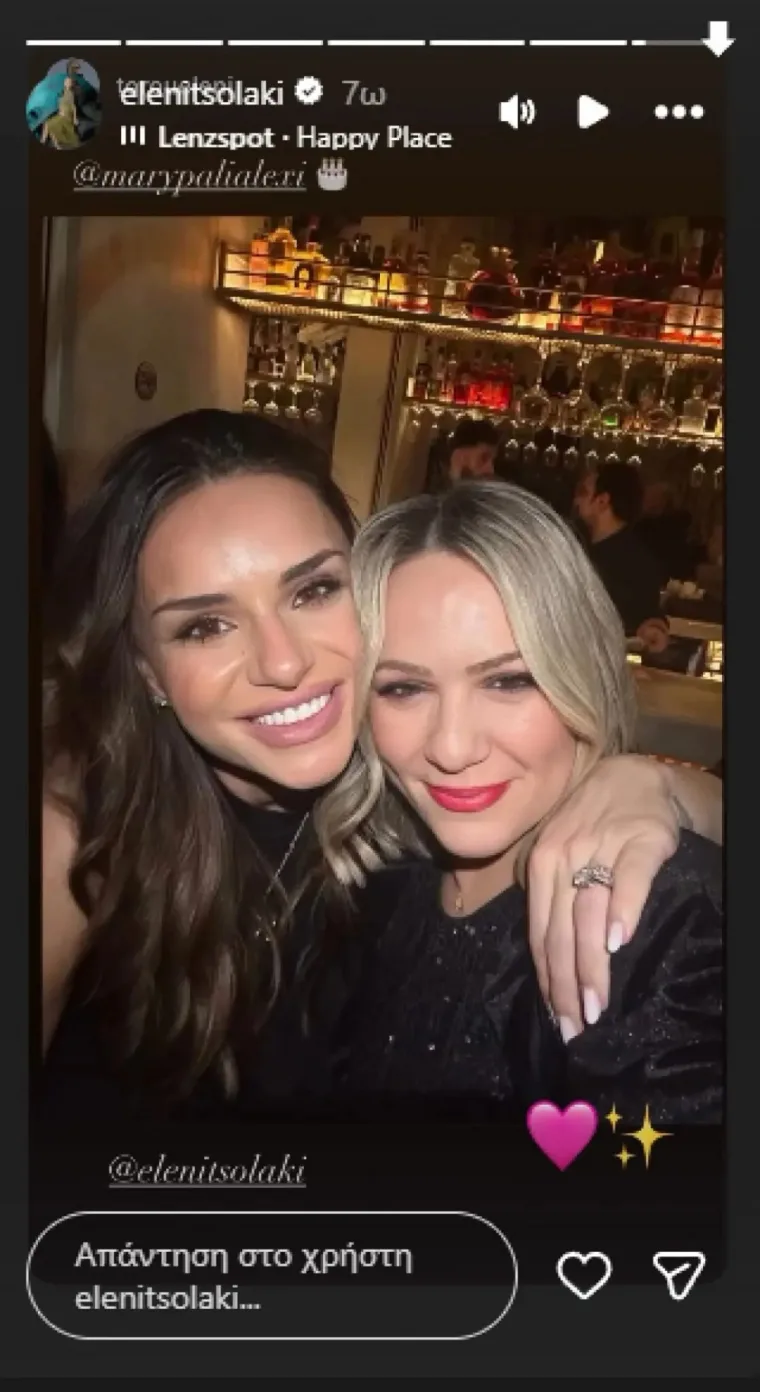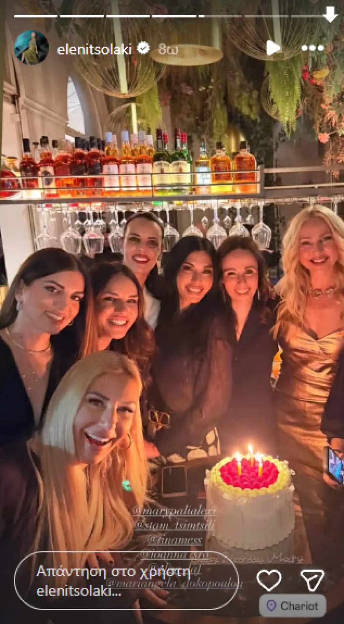 Η έξοδος πραγματοποιήθηκε με αφορμή τα γενέθλια της αρχισυντάκτριας του «Happy Day», Μαίρης Παλιαλέξη, σε ένα φιλικό και χαλαρό κλίμα. Στο πλευρό της βρέθηκε η Σταματίνα Τσιμτσιλή, με την οποία διατηρεί στενή φιλία εδώ και χρόνια, και οι δυο τους έδειχναν να απολαμβάνουν κάθε στιγμή.