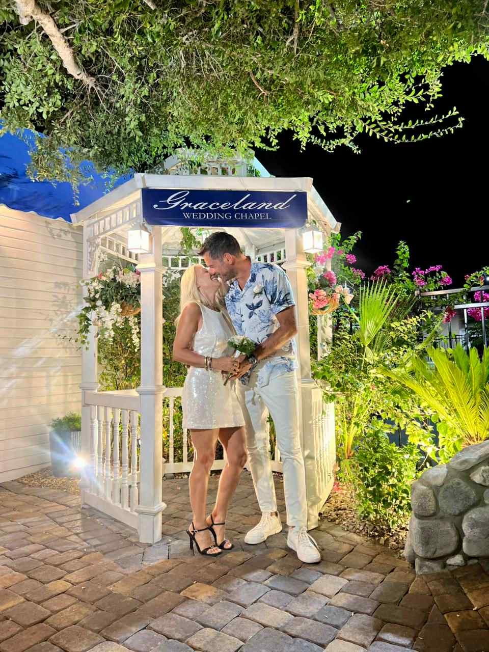 Όπως γράφει η Σπυριδούλα Τριάντου στην Espresso, ο άντρας της την οδήγησε στο Graceland Wedding Chapel που είναι το παλαιότερο παρεκκλήσι γάμου στο Λας Βέγκας, αναγνωρισμένο παγκοσμίως ως το πρώτο παρεκκλήσι που φιλοξένησε γαμήλια τελετή με θέμα τον Έλβις, η οποία ξεκίνησε το 1977. Μάλιστα το παρεκκλήσι έχει φιλοξενήσει πολλές διασημότητες, όπως τους Jon Bon Jovi, Johnny Depp, Selma Hayek και άλλους.