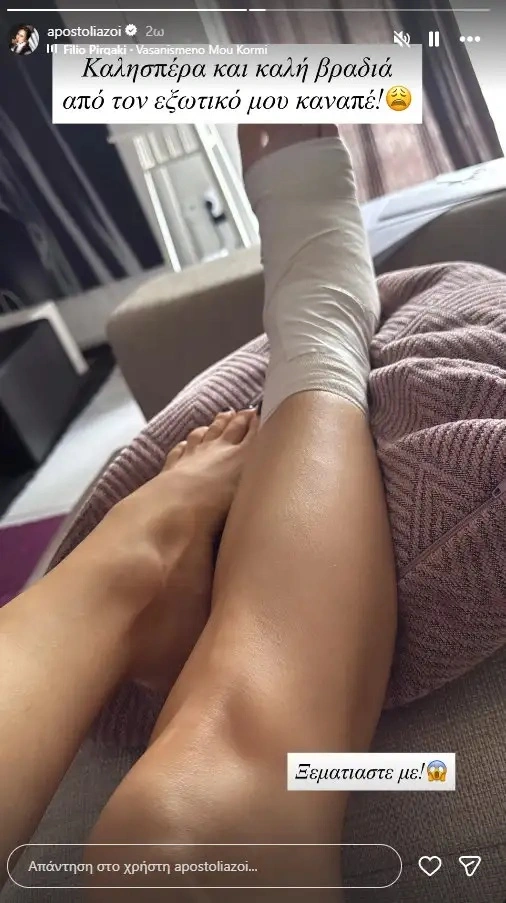 «Ένα διάστρεμμα είναι. Είχα ένα άσχημο πέσιμο και αναγκαστικά πήγα στο νοσοκομείο για να κάνω ακτινογραφία, ώστε να διαπιστώσουμε ότι δεν είναι σπάσιμο. Κανονικά πρέπει να μείνω στο κρεβάτι για σχεδόν δύο εβδομάδες και να μην κουνιέμαι. Ωστόσο, εγώ σε 10 ημέρες πρέπει να είμαι όρθια γιατί έχω διάφορα πράγματα που ετοιμάζω. Θα μπω στο στούντιο, αλλά θα ηχογραφήσω καθιστή. Το χαμόγελό μας δεν το χάνουμε για ένα διάστρεμμα», είπε η Αποστολία Ζώη αποκλειστικά στο FTHIS.