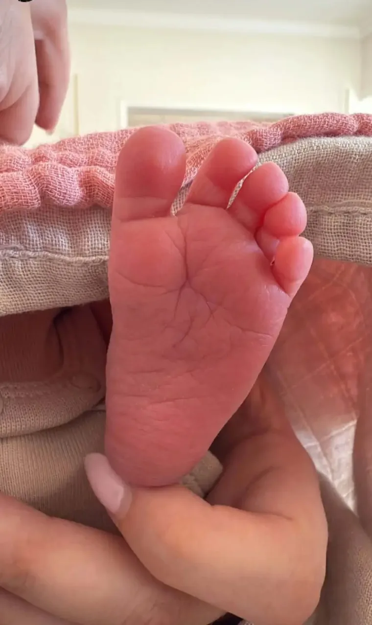 Στη φωτογραφία που ανέβασε στο Instagram, η Κατερίνα Καινούργιου κρατά προστατευτικά στην αγκαλιά της το μωρό, με τον Παναγιώτη Κουτσουμπή να εστιάζει στην... πατουσίτσα της μικρής, μια εικόνα που «έλιωσε» τις καρδιές των ακολούθων τους.