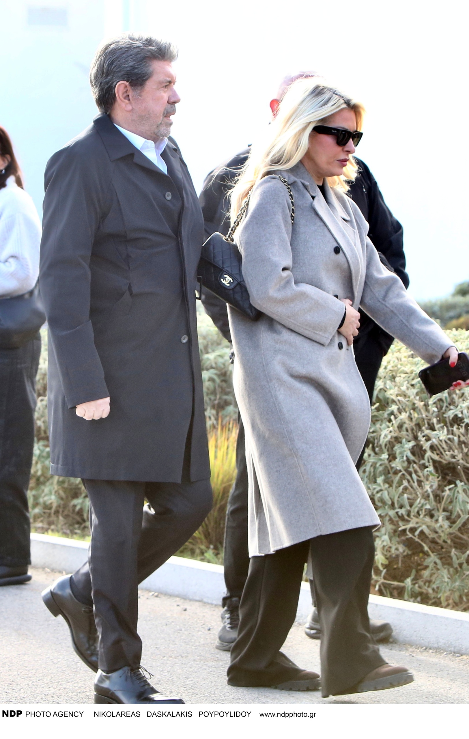 Η Ελένη Μενεγάκη και ο Γιάννης Λάτσιος στη κηδεία του Γιώργου Παπαδάκη
