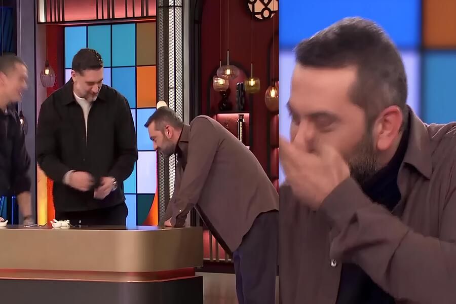 Στην αρχή ο Λεωνίδας Κουτσόπουλος γέλασε αλλά ήταν ήδη στη διαδικασία της... κατάποσης αυτού που δοκίμαζε και κάπως έτσι στραβοκατάπιε και πήγε να πνιγεί.