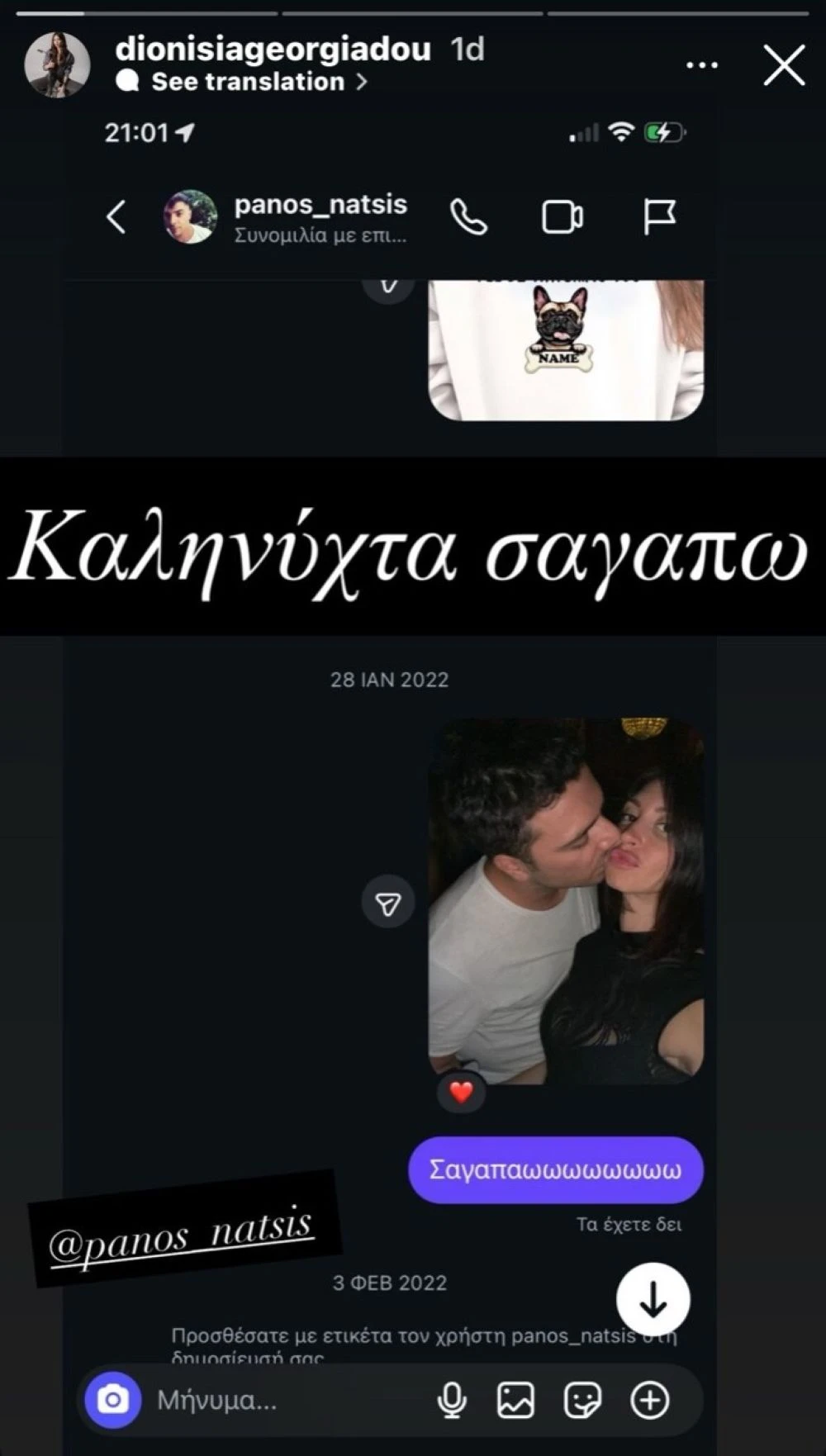 Η Διονυσία Γεωργιάδου δημοσίευσε επίσης φωτογραφικό υλικό από κοινές τους στιγμές, σε ταξίδια και καθημερινές εξόδους, αποτυπώνοντας μια σχέση που είχε έντονη συναισθηματική σύνδεση. Οι εικόνες συνοδεύτηκαν από μουσική υπόκρουση, δίνοντας έναν πιο προσωπικό και εσωστρεφή τόνο στην ανάρτηση.