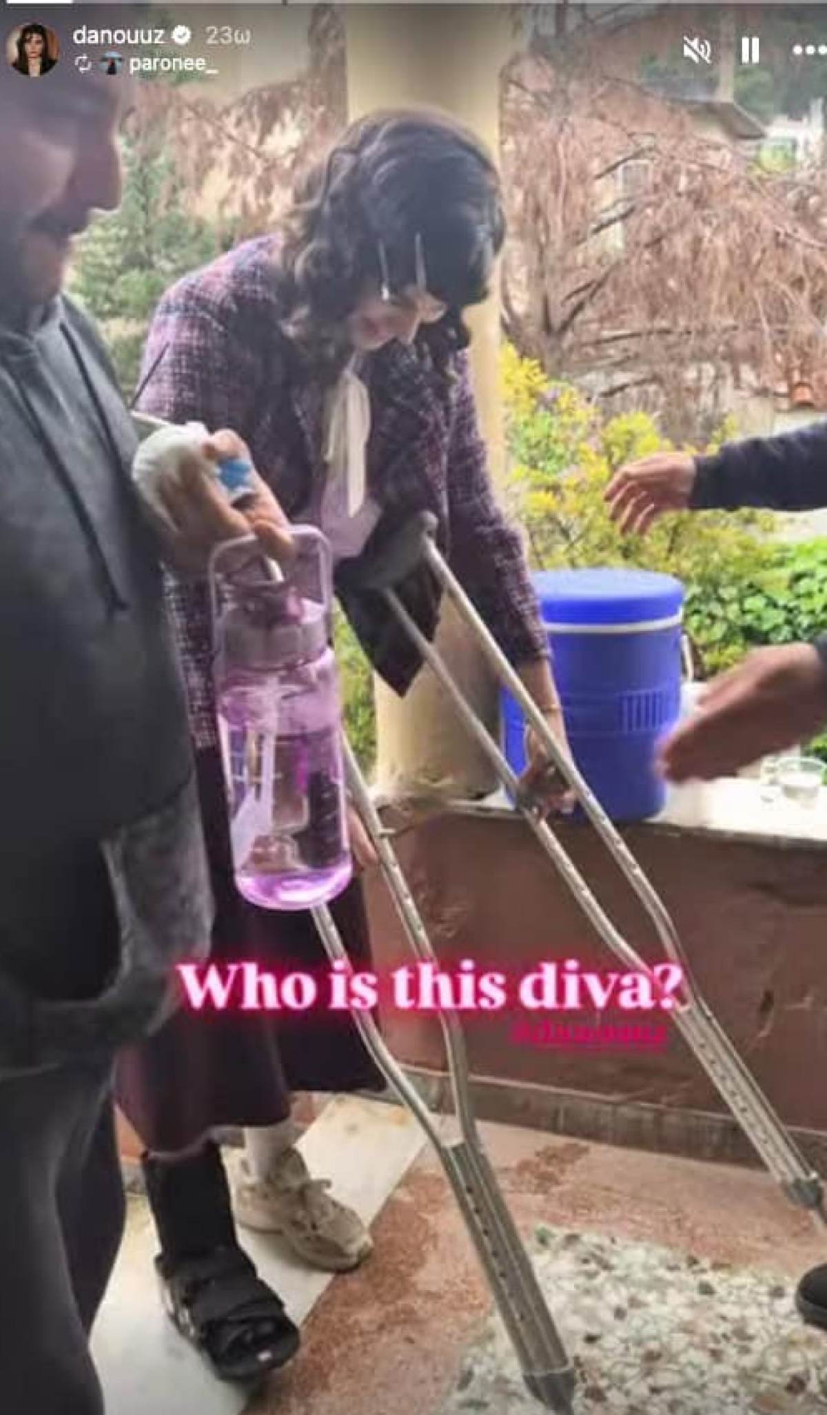 Η ίδια αναδημοσίευσε τα βίντεο των φίλων της, στα οποία φοράει γύψο λόγω του κατάγματος. Οι λεπτομέρειες για το πως προκλήθηκε το ατύχημα δεν έχουν γίνει γνωστές, ωστόσο φαίνεται πως δεν το έχει αφήσει να της χαλάσει την ψυχολογία, καθώς επέστρεψε κανονικά στις επαγγελματικές της υποχρεώσεις, αποφασισμένη να μην το βάλει κάτω.