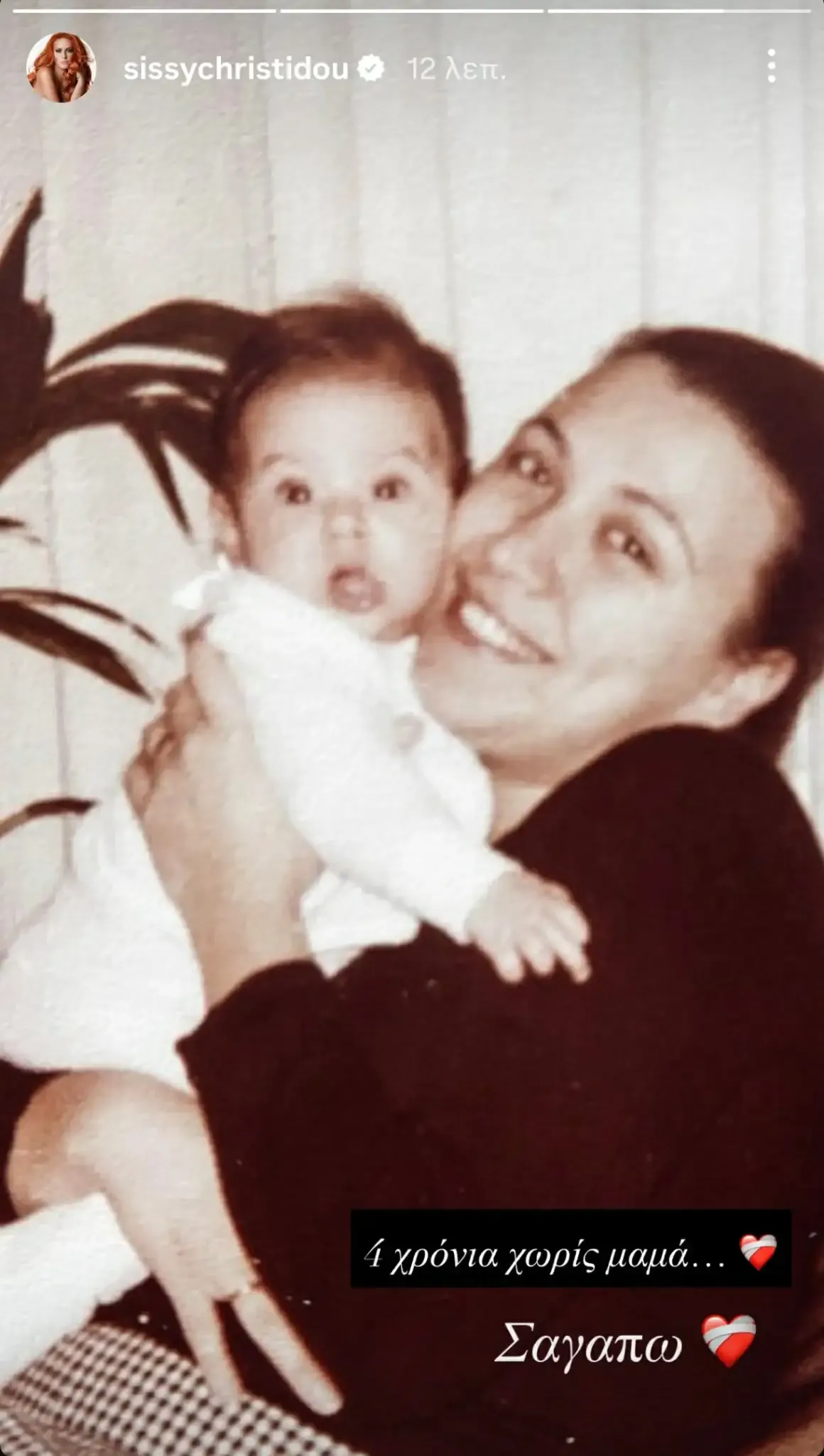 Τέσσερα χρόνια συμπληρώθηκαν χθες από την ημέρα που η Σίσσυ Χρηστίδου βίωσε μία από τις πιο δύσκολες απώλειες της ζωής της, χάνοντας την πολυαγαπημένη της μητέρα.