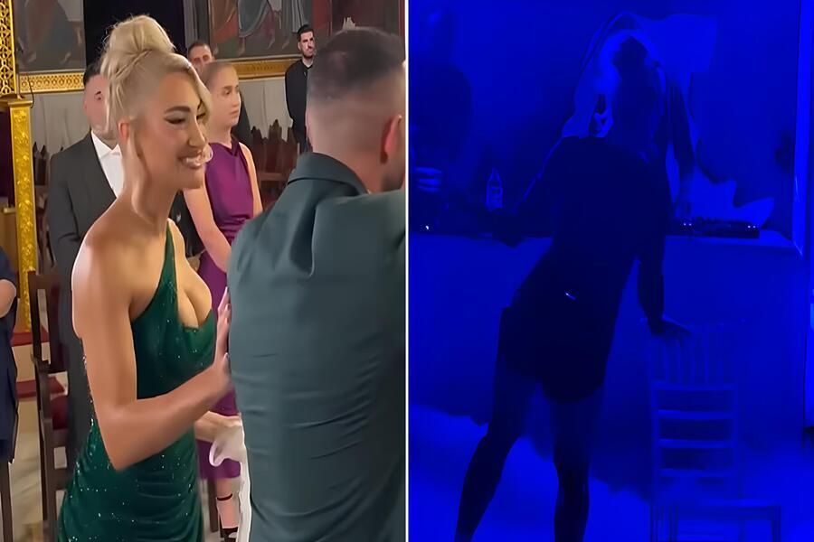 Μετά το μυστήριο, το γλέντι μεταφέρθηκε σε χώρο εκδηλώσεων, όπου η Στέλλα άλλαξε outfit και εμφανίστηκε με ένα κοντό νυφικό κεντημένο με πέτρες, ιδανικό για να ξεκινήσει το πάρτι. Και πράγματι, το γλέντι άναψε: οι νεόνυμφοι άνοιξαν τον χορό με μια εντυπωσιακή χορογραφία, προκαλώντας ενθουσιασμό στους καλεσμένους.