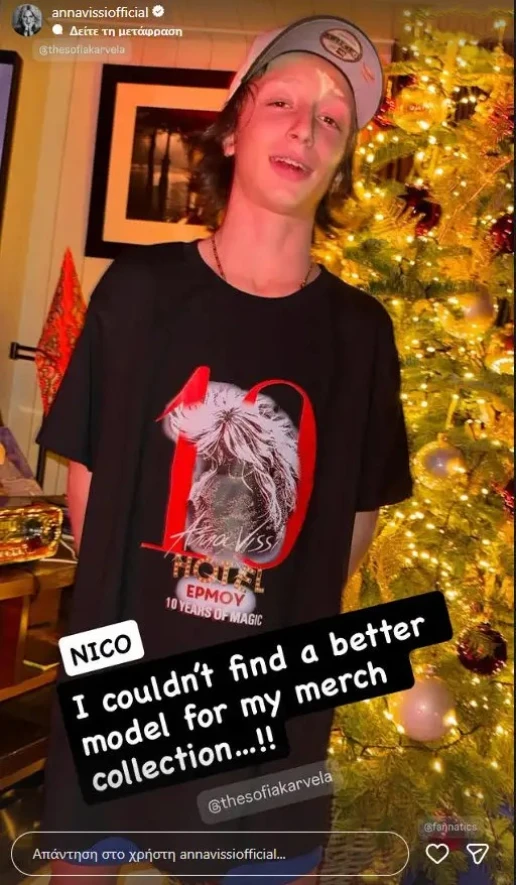Η Άννα Βίσση μοιράστηκε μαζί μας φωτογραφίες μέσα από τον λογαριασμό της στο Instagram. Σε μία από τις φωτογραφίες την βλέπουμε να ποζάρει με στιλ καθισμένη σε πολυθρόνα, ενώ στην άλλη είδαμε τον εγγονό της να φορά το T-Shirt για τα 10 χρόνια των εμφανίσεών της σε γνωστό νυχτερινό κέντρο.