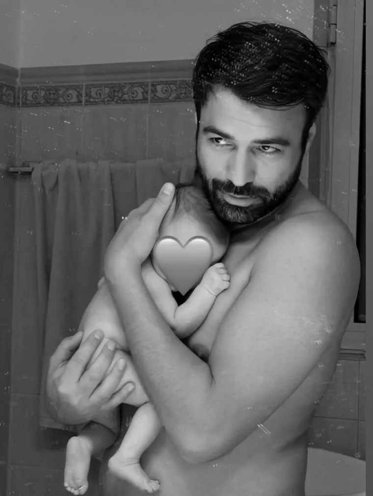 Στην ανάρτησή του έγραψε «Αυτές οι μικρές στιγμές», ποζάροντας στο μπάνιο του σπιτιού του με τη μικρή του να κοιμάται γαλήνια στην αγκαλιά του.