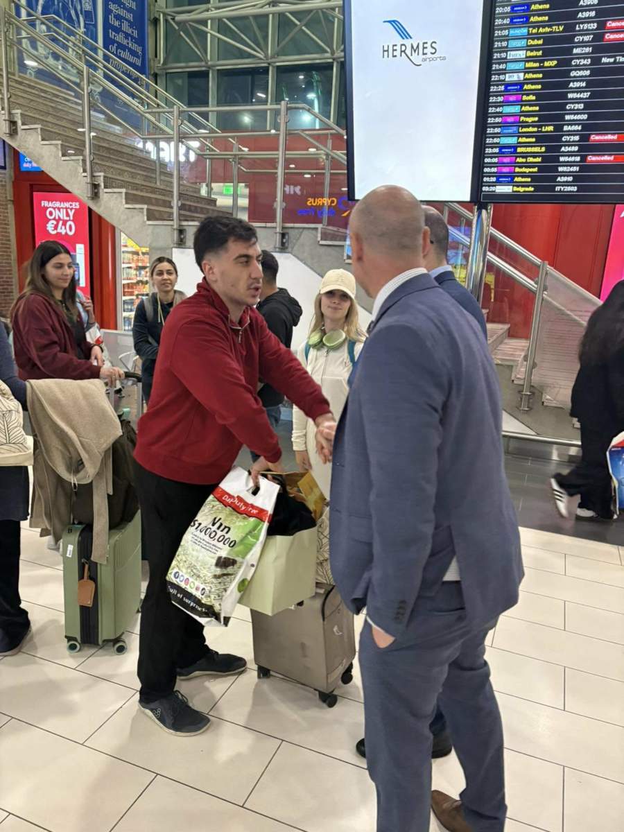 Η Στυλιάνα Αβερκίου έφτασε επιτέλους στην Κύπρο με τη δεύτερη ναυλωμένη πτήση που πραγματοποίησε η Cyprus Airways για τη μεταφορά Κυπρίων από το Ντουμπάι, έπειτα από ενέργειες του Υπουργείου Εξωτερικών. Στο αεροδρόμιο την υποδέχτηκε ο αγαπημένος της, Φειδίας Παναγιώτου, ο οποίος την αγκάλιασε σφιχτά.