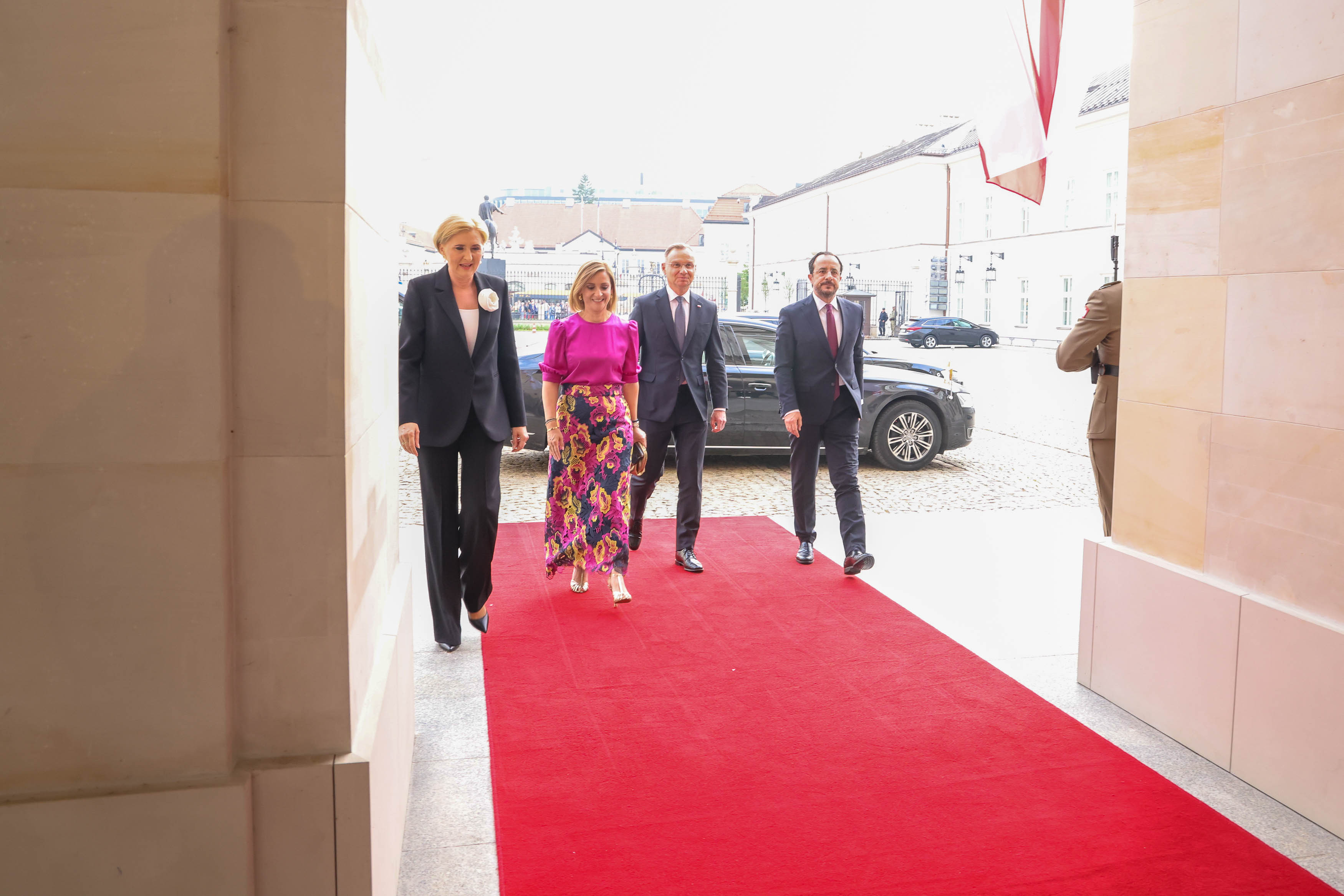 Το προεδρικό ζεύγος της Κύπρου έτυχε επίσημης υποδοχής στο Προεδρικό Μέγαρο, στη Βαρσοβία την Πέμπτη, και ακολούθως είχε κατ΄ιδίαν συνάντηση με τον Πρόεδρο της Πολωνίας Αντρέι Ντούντα, την οποία ακολούθησαν διευρυμένες συνομιλίες μεταξύ των αντιπροσωπειών των δύο χωρών, ενώ στην συνέχεια ο Νίκος Χριστοδουλίδης μετέβη στο Μνημείο του Αγνώστου Στρατιώτη, όπου και κατέθεσε στεφάνι.