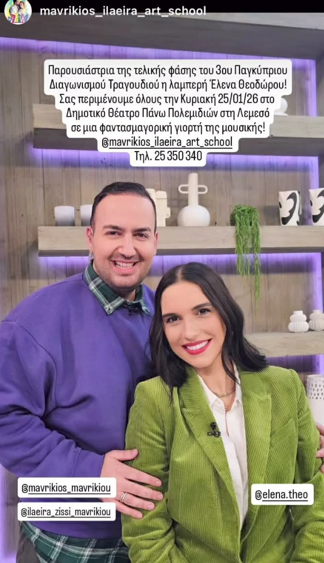 Οι δρόμοι τους συναντήθηκαν ξανά με αφορμή τον τελικό του 3ου Παγκύπριου Διαγωνισμού Τραγουδιού που θα γίνει στις 25/1/26, όπου η Έλενα Θεοδώρου δέχτηκε με χαρά την πρόσκληση του Μαυρίκιου για να είναι εκείνη η παρουσιάστρια της εκδήλωσης.