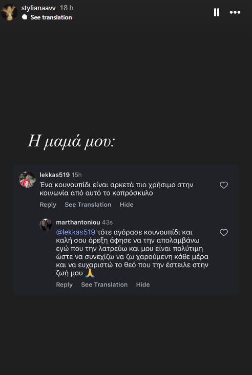 Δείτε το επίμαχο σχόλιο και την απάντηση της μητέρας της Στυλιάνας: