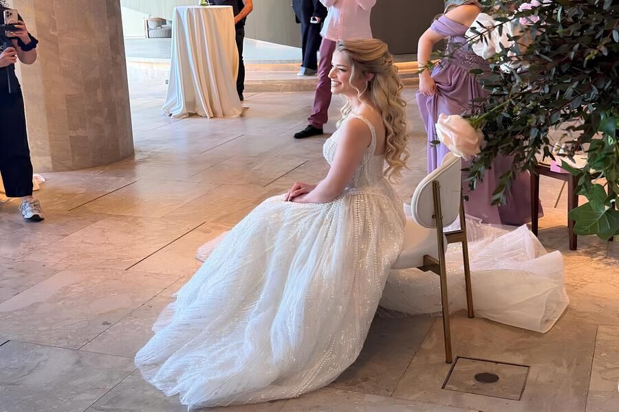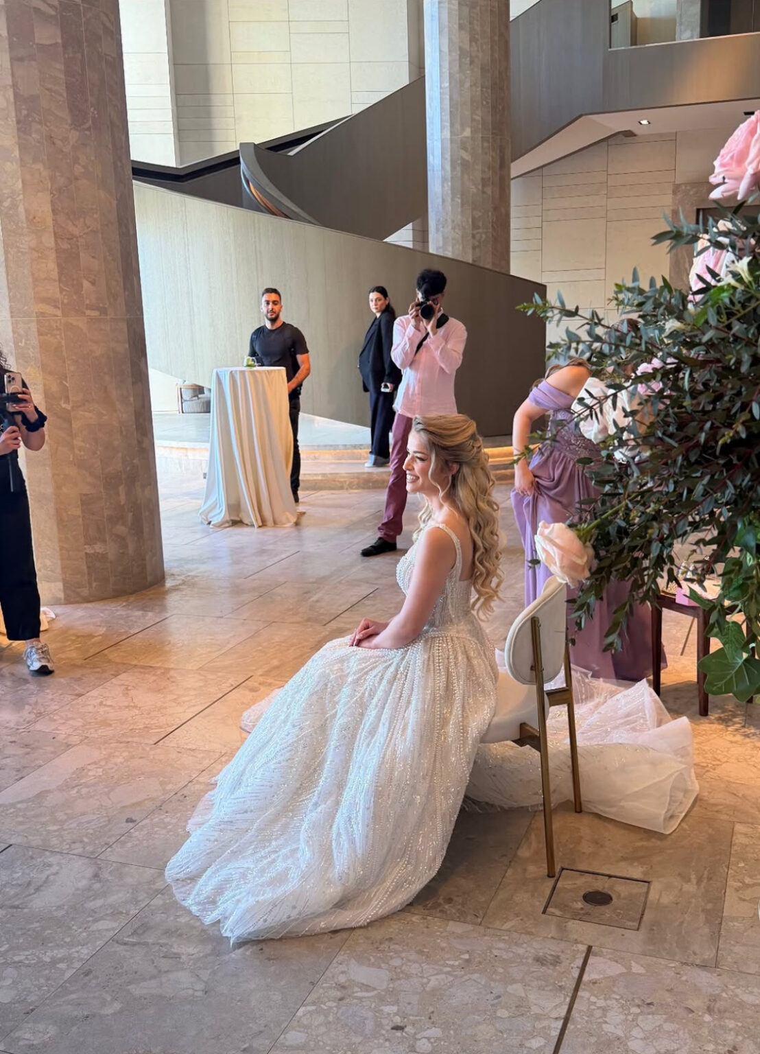 Η Στυλιάνα Αβερκίου πιο όμορφη από ποτέ, λάμπει μέσα στο εντυπωσιακό νυφικό της, απαλαμβάνοντας κάθε στιγμή από τα παραδοσιακά αλλάματα σε γνωστό ξενοδοχείο της πόλης.