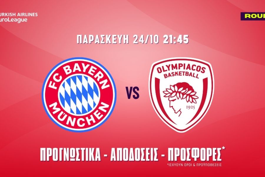 Η Μπάγερν Μονάχου φιλοξενεί τον Ολυμπιακό για την 6η αγωνιστική της EuroLeague, με το BetMarket.com.cy να παρουσιάζει τα πιο δυνατά στοιχηματικά σημεία και την πλήρη ανάλυση του αγώνα στα σημερινά προγνωστικά μπάσκετ.