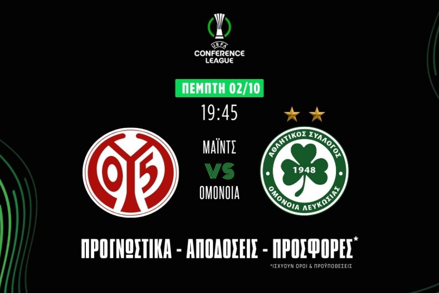 Ο αγώνας Ομόνοια – Μάιντς θα διεξαχθεί στο «ΓΣΠ» το βράδυ της Πέμπτης (02/10/25) και αποτελεί δυνατή αναμέτρηση για την 1η αγωνιστική της League Phase στα προγνωστικά Conference League. Η Ομόνοια προέρχεται από εντυπωσιακή εμφάνιση και νίκη 5-0 επί της Ανόρθωσης στο τελευταίο της ματς. Από την άλλη, η Μάιντς παρουσιάζει μεταπτώσεις, με επιθετικές δυσκολίες και ασταθή αμυντική λειτουργία.