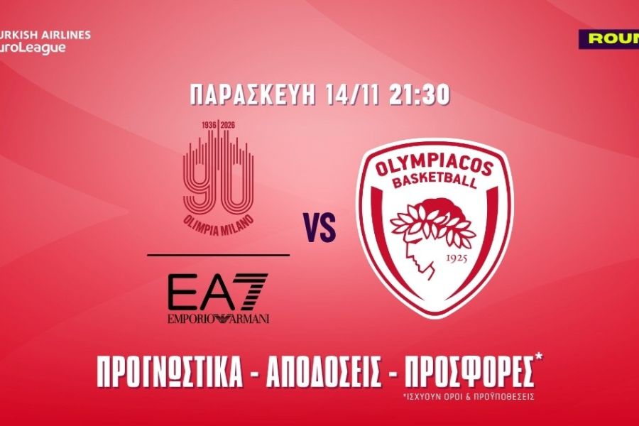 14/11, 21:30 Αρμάνι – Ολυμπιακός Νικητής 1ης περιόδου Ολυμπιακός (Απόδοση 1.75)