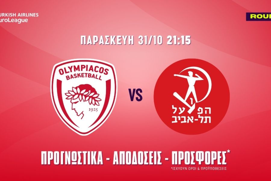 31/10, 21:15,Ολυμπιακός – Χάποελ Τελ Αβίβ: Ολυμπιακός over 21.5 πόντοι στην 1η περίοδο (Απόδοση 1.73)