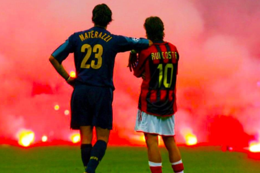 Αυτή η φωτογραφία έγινε το απόλυτο σύμβολο του ντέρμπι della Madonnina. Ήταν η απόδειξη ότι η αντιπαλότητα, όσο μεγάλη κι αν είναι, σταματά εκεί που αρχίζει ο σεβασμός και η κοινή αγάπη για το παιχνίδι. Μέσα στις φλόγες και την καταστροφή, ο Ματεράτσι και ο Ρούι Κόστα θύμισαν σε όλο τον πλανήτη ότι οι παίκτες είναι οι πρώτοι που πληγώνονται όταν το ποδόσφαιρο ηττάται από τη βία.