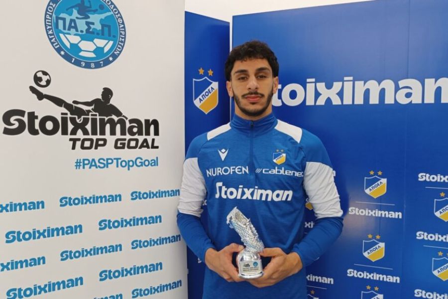 O επιθετικός του ΑΠΟΕΛ Νικόλας Κούτσακος παρέλαβε από τον ΠΑ.Σ.Π. το βραβείο Stoiximan Top Goal της 12ης αγωνιστικής του Cyprus League by Stoiximan 2025/26 (ήταν στο ντέρμπι με την Ανόρθωσή).