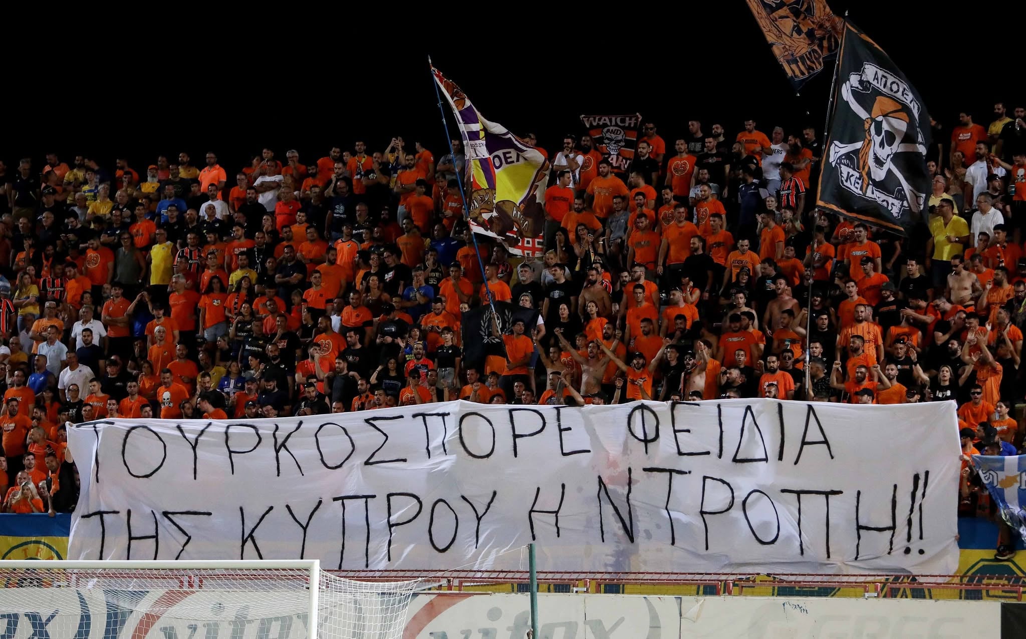 Υπόθεση που αφορά τη χρήση ρατσιστικών ή υβριστικών συνθημάτων ή συμβόλων, διερευνά η Αστυνομία στη Λάρνακα ύστερα από την ανάρτηση πανό στον ποδοσφαιρικό αγώνα μεταξύ Freedom 24 Krasava ΕΝΥ – ΑΠΟΕΛ, που διεξήχθη την Κυριακή στο στάδιο "Αμμόχωστος". Το πανό είχε συνθήμα κατά του ευρωβουλευτή Φεδία Παναγιώτου.