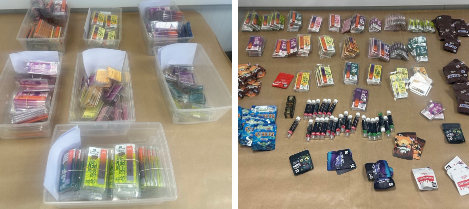 Συγκεκριμένα, κατά τη διάρκεια της έρευνας που διενεργήθηκε δυνάμει δικαστικού εντάλματος, εντοπίστηκαν και κατασχέθηκαν 657 συσκευασίες/προϊόντα που περιείχαν τετραυδροκανναβινόλη (THC), 11 συσκευασίες/προϊόντα που περιέχουν την ουσία κανναβιδιόλη (CBD), 24 χειροποίητα τσιγάρα που περιέχουν φυτική ύλη καθώς επίσης και μια πλάκα άγνωστης συμπαγούς ουσίας, βάρους 100 περίπου γραμμαρίων. Όλα τα ανευρεθέντα παραλήφθηκαν για περαιτέρω επιστημονικές εξετάσεις.