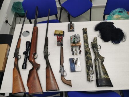 Επιπρόσθετα, ανευρέθηκαν έξι κυνηγετικά όπλα, καθώς επίσης και αριθμός φυσιγγίων.