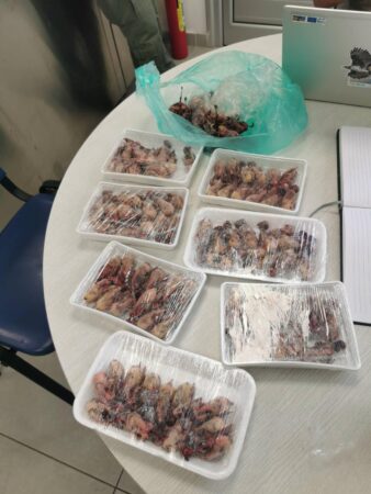 Κατά τη διάρκεια των ερευνών, που πραγματοποιήθηκαν σε οικίες, υποστατικά και οχήματα, σε περιοχές του διαμερίσματος Μόρφου και της επαρχίας Λεμεσού, εντοπίστηκαν και κατασχέθηκαν φρεσκοσκοτωμένοι και κατεψυγμένοι λαγοί, φραγκολίνες, πάπιες, μεγάλος αριθμός νεκρών άγριων πτηνών, καθώς και ένας ζωντανός λαγός.