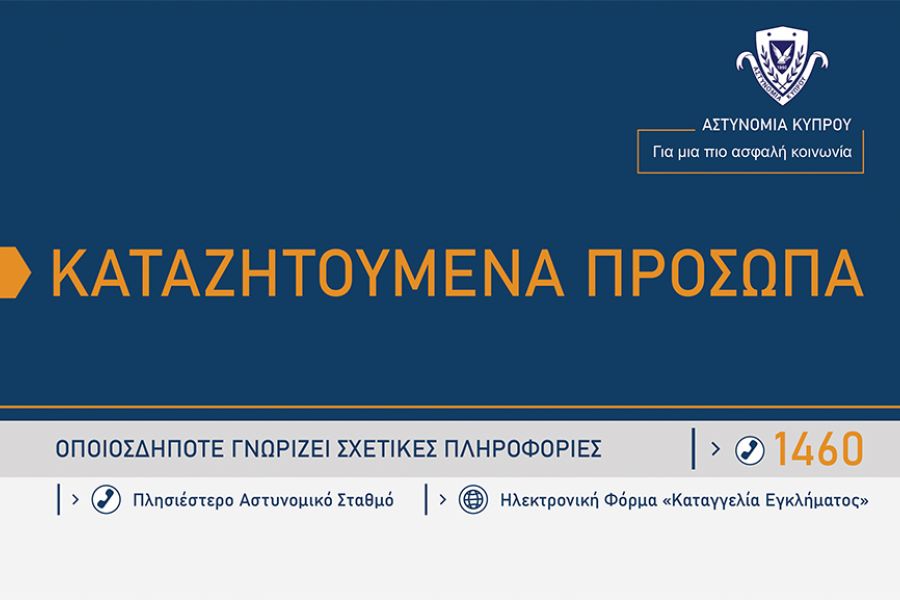 Παρακαλείται οποιοσδήποτε γνωρίζει οτιδήποτε που μπορεί να βοηθήσει στον εντοπισμό τους, να επικοινωνήσει με το ΤΑΕ Λάρνακας στον αριθμό 24-804060 ή με τον πλησιέστερο Αστυνομικό Σταθμό ή με τη Γραμμή του Πολίτη στον αριθμό 1460.