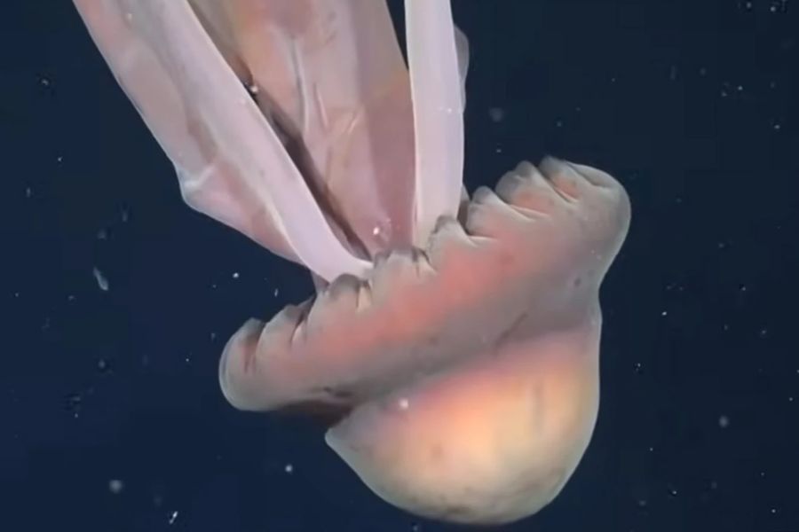 Στο βίντεο της γιγαντιαίας φαντασμομέδουσας, διακρίνονται νεαρά ψάρια να κολυμπούν δίπλα στα πλοκάμια της, τα οποία μοιάζουν με μακριές, ροζ κορδέλες που κατεβαίνουν απαλά μέσα στη θάλασσα. Σύμφωνα με το Schmidt Ocean Institute, οι σπάνιες αυτές μέδουσες δεν διαθέτουν κνιδωτικά πλοκάμια, αλλά χρησιμοποιούν τα μακριά τους άκρα για να συλλαμβάνουν τη λεία τους.