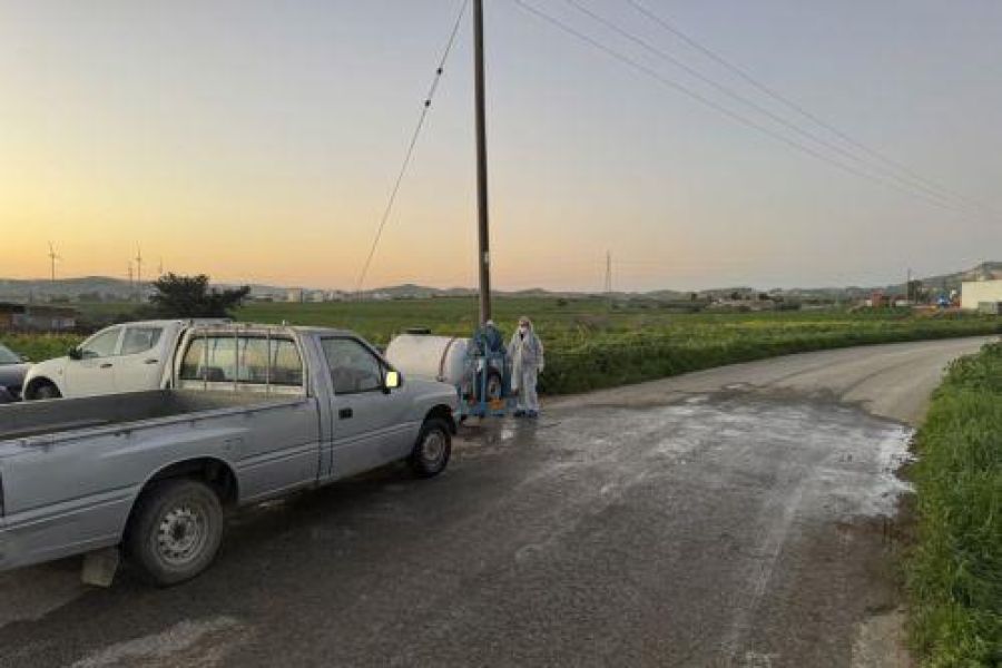 Παράλληλα, συνεργείο των κτηνιατρικών υπηρεσιών πραγματοποιεί απολύμανση στα ελαστικά των οχημάτων που εξέρχονται από την αποκλεισμένη περιοχή, ενώ αυξημένη είναι η παρουσία περιπολικών της αστυνομίας, τα μέλη της οποίας πραγματοποιούν περιπολίες.