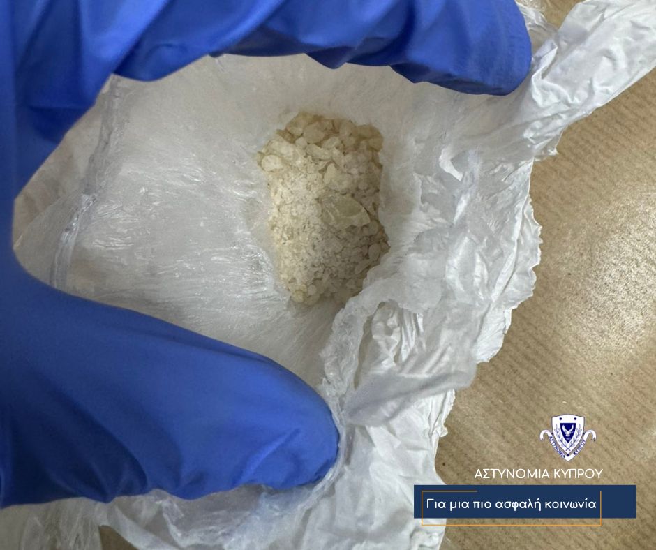 Κατά τη διάρκεια της έρευνας που ακολούθησε, εντοπίστηκαν στην κατοχή του 27χρονου δύο συσκευασίες που περιείχαν κοκαΐνη, συνολικού μικτού βάρους δύο γραμμαρίων περίπου, ενώ εντός του αυτοκινήτου, εντοπίστηκε μία συσκευασία που περιείχε κοκαΐνη μικτού βάρους τεσσάρων γραμμαρίων, ένα χάπι ecstasy, μια ζυγαριά ακριβείας και χρηματικό ποσό ύψους €2,010. Ο 27χρονος συνελήφθη για αυτόφωρο αδίκημα.
