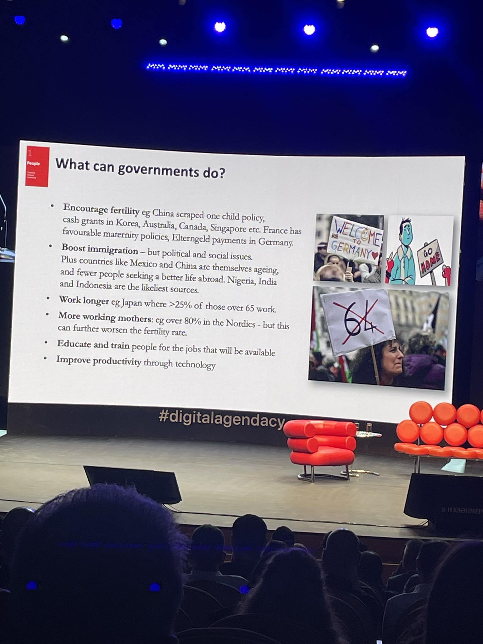 Επιπρόσθετα, η γήρανση του πληθυσμού αποτελεί ένα ακόμα κρίσιμο ζήτημα. Κάθε χρόνο η μέση ηλικία αυξάνεται, και αυτό δημιουργεί νέες προκλήσεις. Για παράδειγμα, στην Κύπρο, όπου η ηλικία των 39 ετών θεωρείται σημαντική στη δομή της αγοράς εργασίας, παρατηρούμε μια σημαντική αύξηση της μέσης ηλικίας. Το γεγονός αυτό μπορεί να έχει ως αποτέλεσμα λιγότερα άτομα που είναι διαθέσιμα να εργαστούν, ενώ πρέπει να συντηρούν τον υπόλοιπο πληθυσμό. Αυτό ενδέχεται να οδηγήσει σε αυξημένους φόρους και οικονομική πίεση στο κράτος για να παρέχει υπηρεσίες και στήριξη σε αυτούς που δεν είναι σε θέση να εργάζονται.