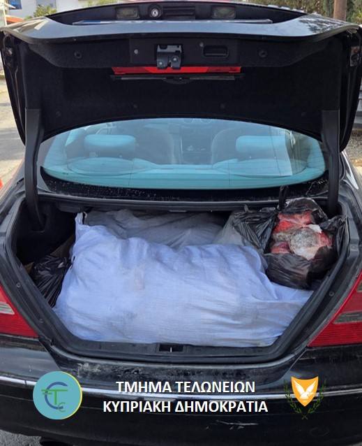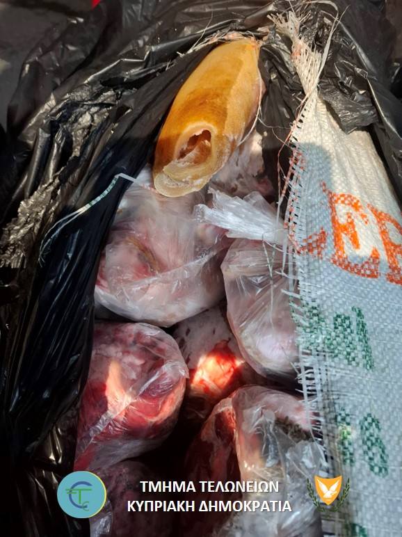 Στις 26/11/2025 λειτουργοί του Τμήματος Τελωνείων κατά τον συνήθη έλεγχο οχημάτων στο σημείο διέλευσης Αγίου Δομετίου ανέκοψαν όχημα ενοικιάσεως που οδηγούσε αλλοδαπός οδηγός με υπηκοότητα Λ.Δ. Κόγκο. Κατά τον έλεγχο του οχήματος εντοπίστηκαν περίπου 150 κιλά νωπού κρέατος (κόκκαλα και δέρματα ζώων) με προέλευση τις κατεχόμενες περιοχές της Κυπριακής Δημοκρατίας. Η προαναφερόμενη ποσότητα ζωικών προϊόντων όπως και το όχημα μεταφοράς τους κατασχέθηκαν από τους λειτουργούς του Τμήματος Τελωνείων. Τα κατασχεθέντα εγκαταλείφθηκαν από τον οδηγό για καταστροφή, ενώ κατέβαλε και συνολικό ποσό €500 ευρώ για τον εξώδικο συμβιβασμό των αδικημάτων και την απόδοση του οχήματος.