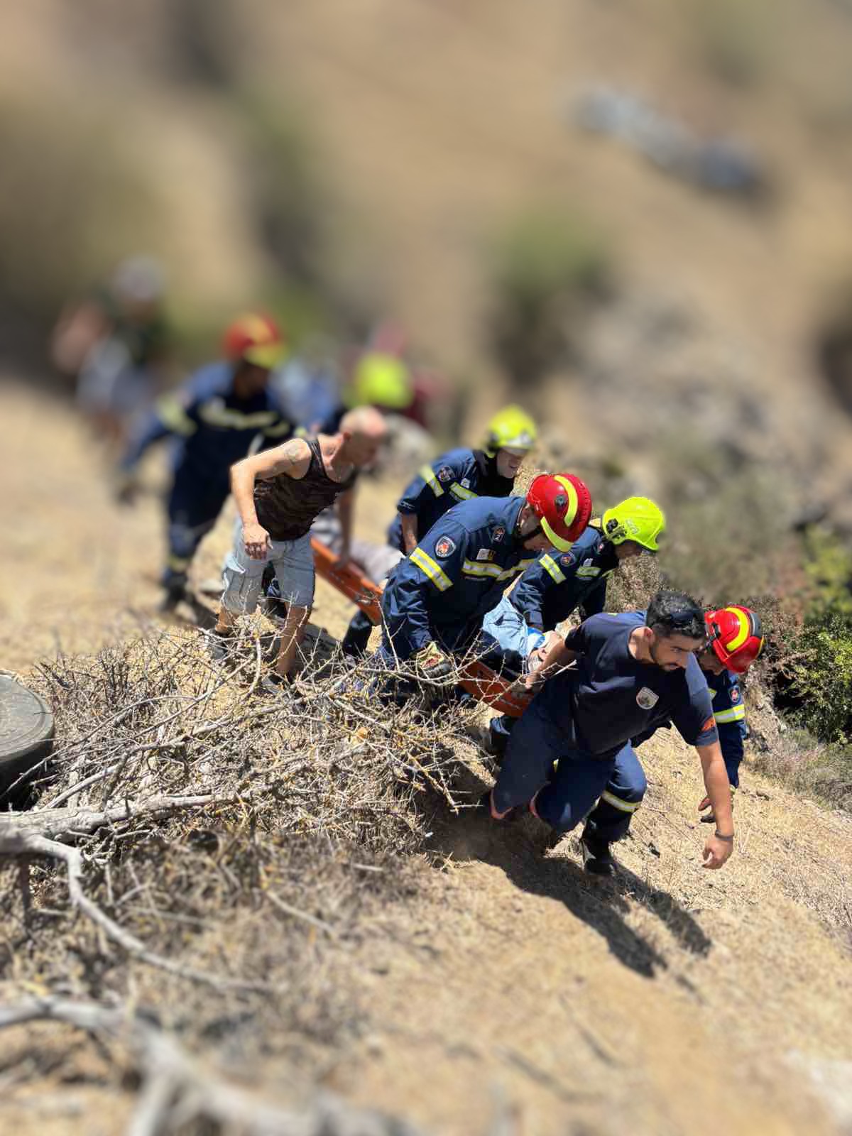 Άτομο, το οποίο επέβαινε σε όχημα το οποίο παρέκκλινε της πορείας του και ακινητοποιήθηκε σε χαράδρα βάθους 10μ. περίπου, αποπαγιδεύτηκε έχοντας τις αισθήσεις του από ομάδα διάσωσης της Πυροσβεστικής Υπηρεσίας, με χρήση διασωστικής εξάρτυσης και αφού τοποθετήθηκε σε φορείο ακινητοποίησης, ανασύρθηκε και παραδόθηκε στο πλήρωμα της Υπηρεσίας Ασθενοφόρων για μεταφορά του στο Τ.Α.Ε.Π. του Γενικού Νοσοκομείου Λευκωσίας.