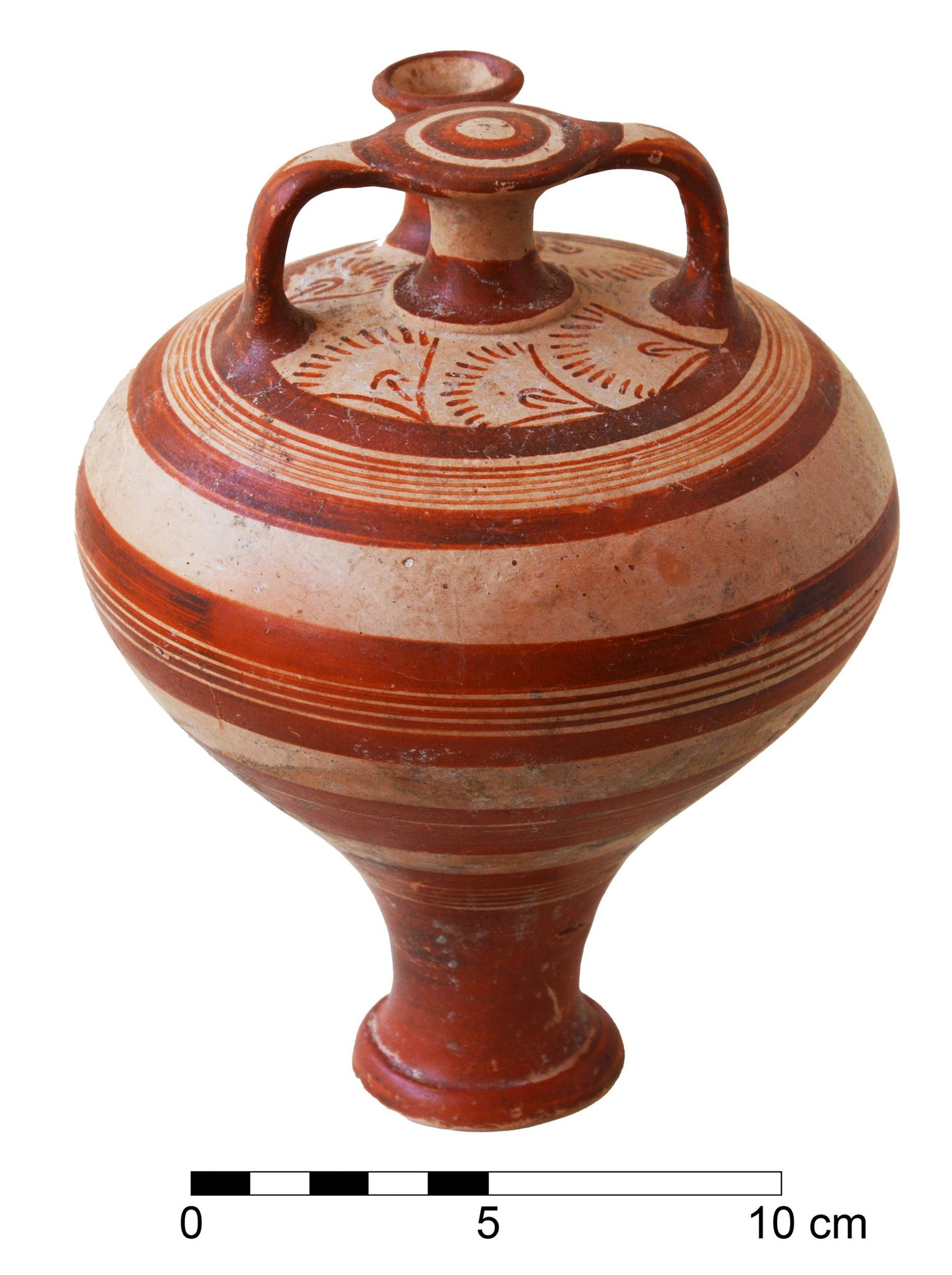 Πολυτελής κεραμική έφθασε από την ηπειρωτική Ελλάδα (κυρίως από το Μπερμπάτι και την Τίρυνθα), την Κρήτη και άλλα νησιά του Αιγαίου, ενώ από την Αίγυπτο προήλθαν αντικείμενα από ελεφαντόδοντο, καθώς και αγγεία από υψηλής ποιότητας ασβεστίτη (αλάβαστρο). Στα εισηγμένα αντικείμενα περιλαμβάνονται ο βαθυκύανος ημιπολύτιμος λίθος λάπις λάζουλι από το Αφγανιστάν (το ορυχείο Sar i-Sang), η καστανέρυθρη καρνεόλη από την Ινδία (το ορυχείο Gujarat), καθώς και το ήλεκτρο (ορισμένα τεμάχια διαμορφωμένα σε χάντρες και ακόμη και σε σκαραβαίο) από την περιοχή της Βαλτικής. «Τα εξωτικά αυτά αντικείμενα πιθανότατα έφθασαν στην Κύπρο μέσω σύνθετων εμπορικών διαδρομών, συχνά με τη διαμεσολάβηση πολιτισμών όπως ο μυκηναϊκός, ο αιγυπτιακός και ο μεσοποταμιακός», προστίθεται.
