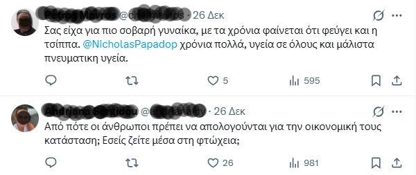 Για να κατηγορηθεί από αρκετούς για κακία, ειρωνική και υποκριτική ανάρτηση, που όπως της έγραψαν, ξεφεύγει από τα όρια καθώς στη φωτογραφία που σχολίασε με τον συγκεκριμένο τρόπο είναι και τα παιδιά της οικογένειας Παπαδόπουλου.