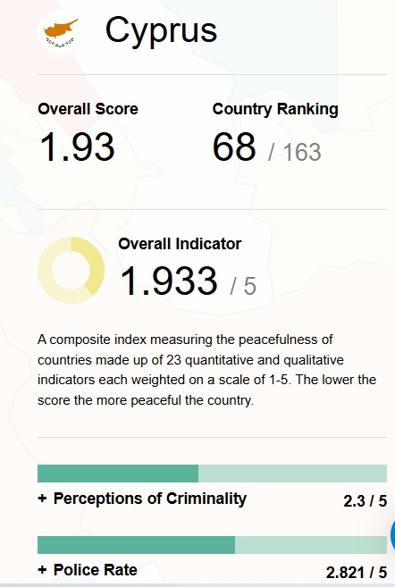 Στον εν λόγω δείκτη Κύπρος βρίσκεται στην 68η θέση.